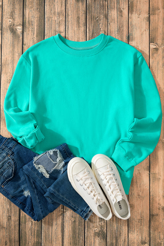 Aruba Blue Plain Drop Shoulder Crewneck Pullover Sweatshirt