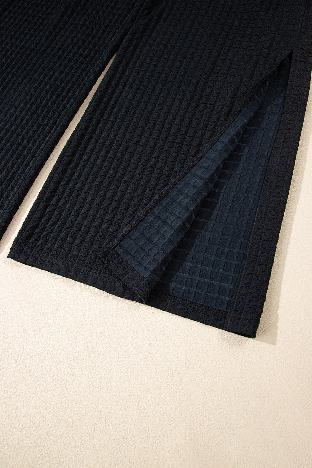 Black Checkered Mesh One Shoulder Short Sleeve Knotted Waist Jumpsuit