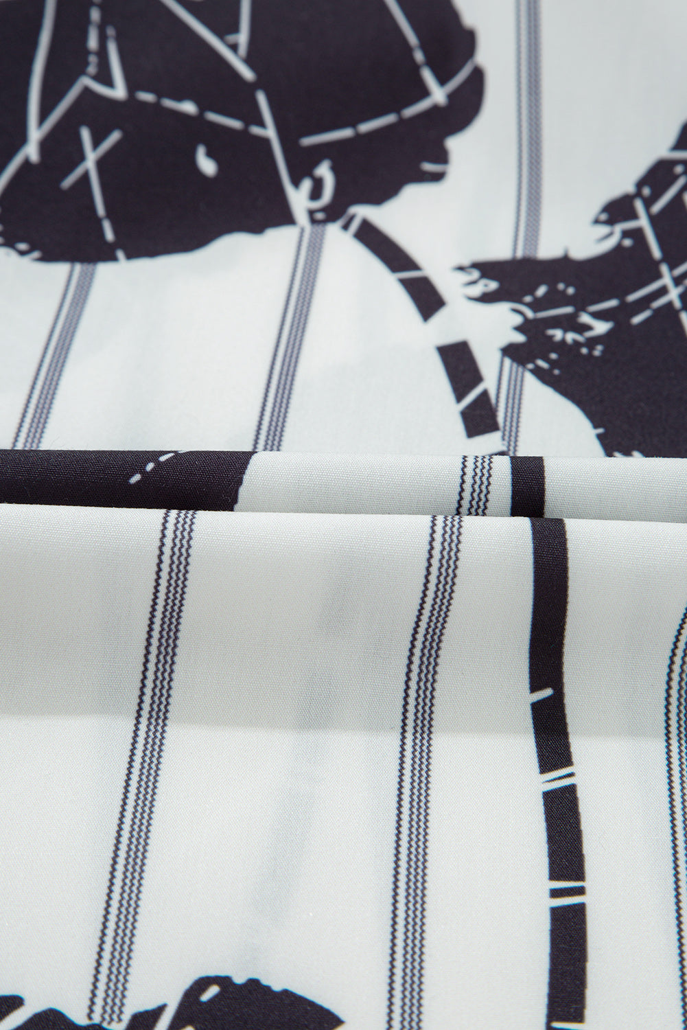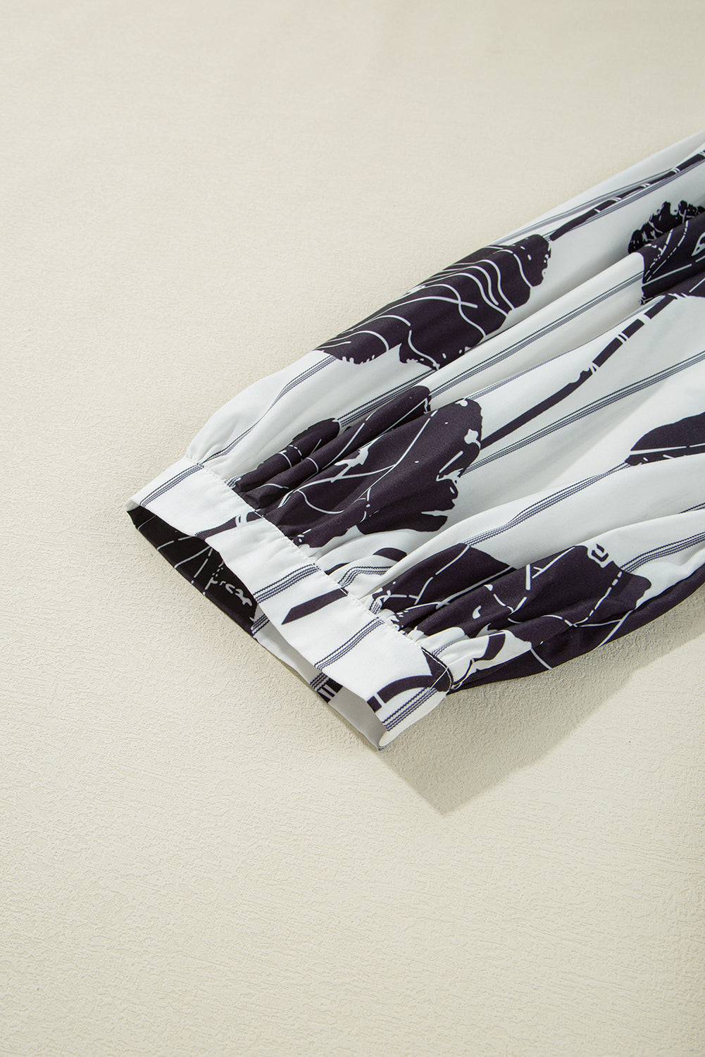 Black Plus Size Floral 3/4 Puff Sleeve Lace-up Neck Mini Dress