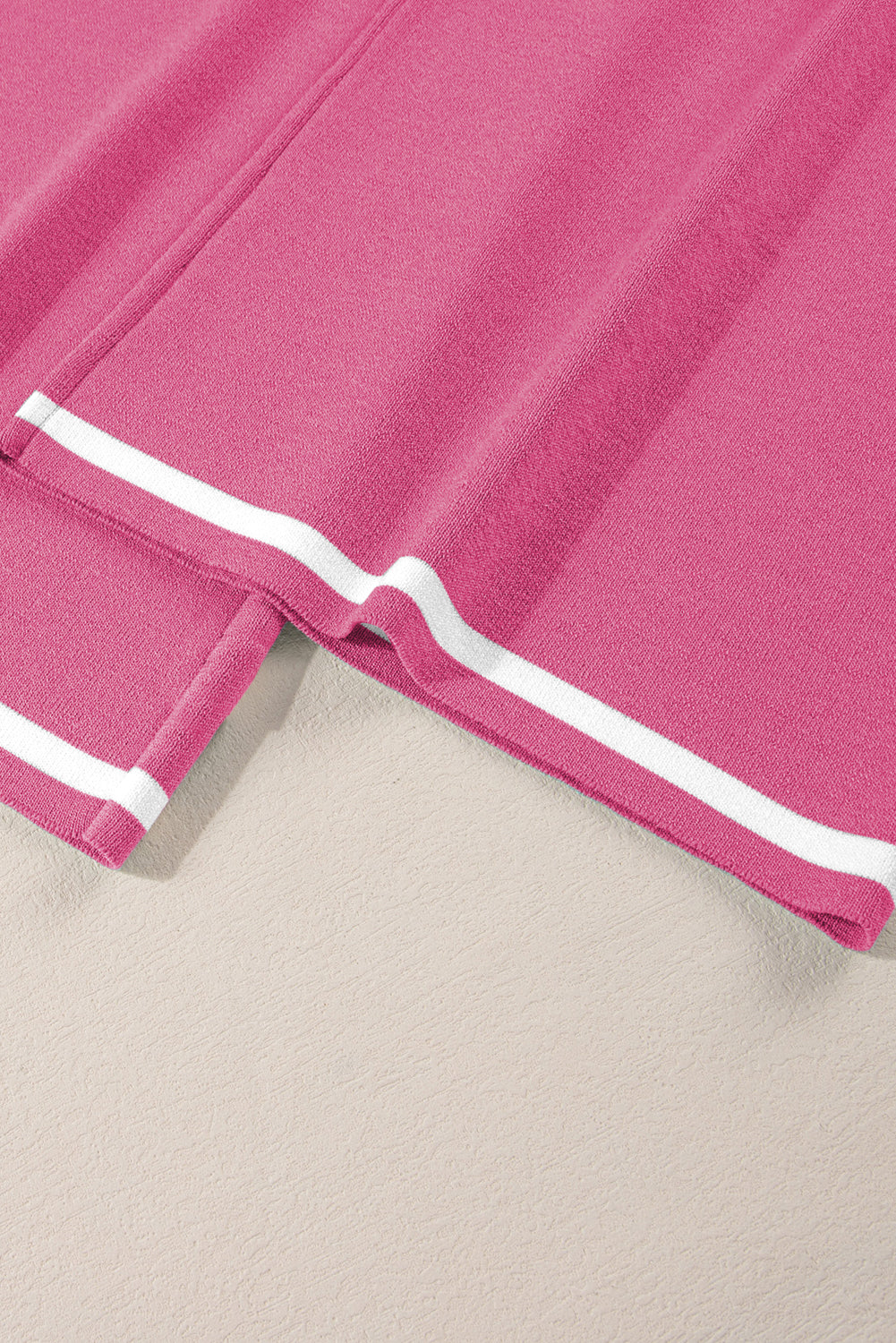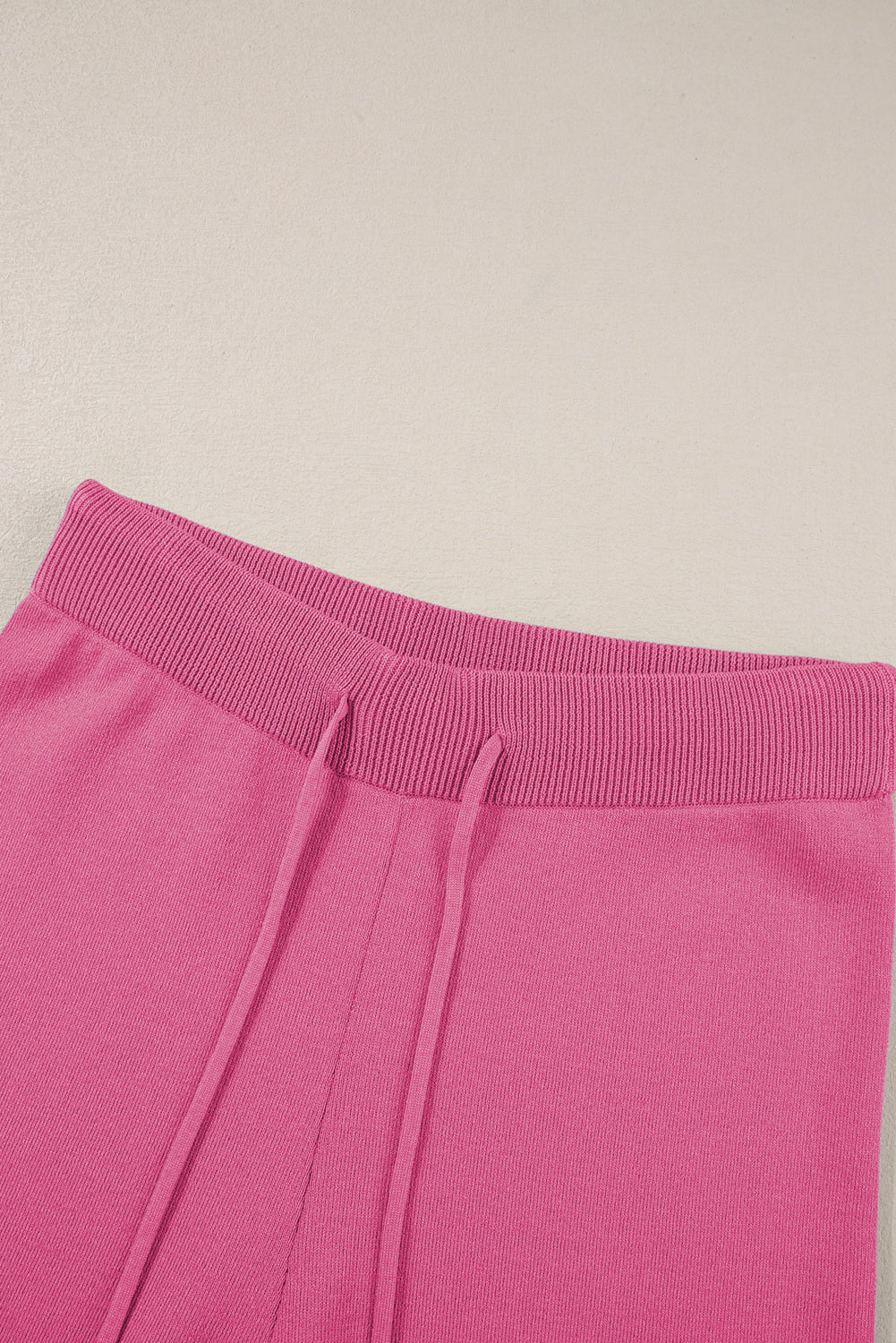Bright Pink Contrast Trim Half Sleeve Top Drawstring Pants Loose 2pcs Sweater Suit