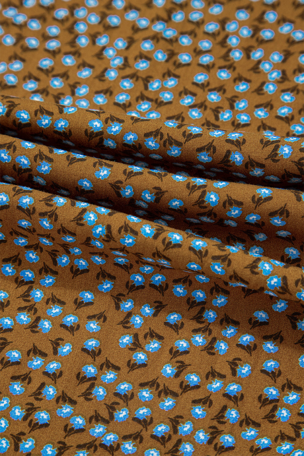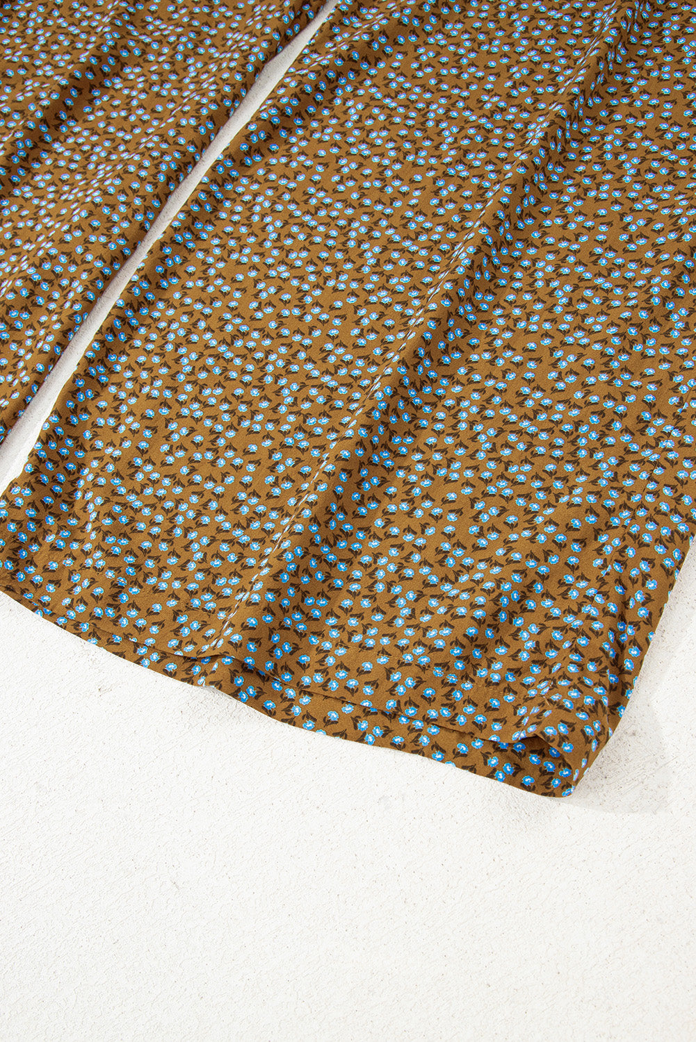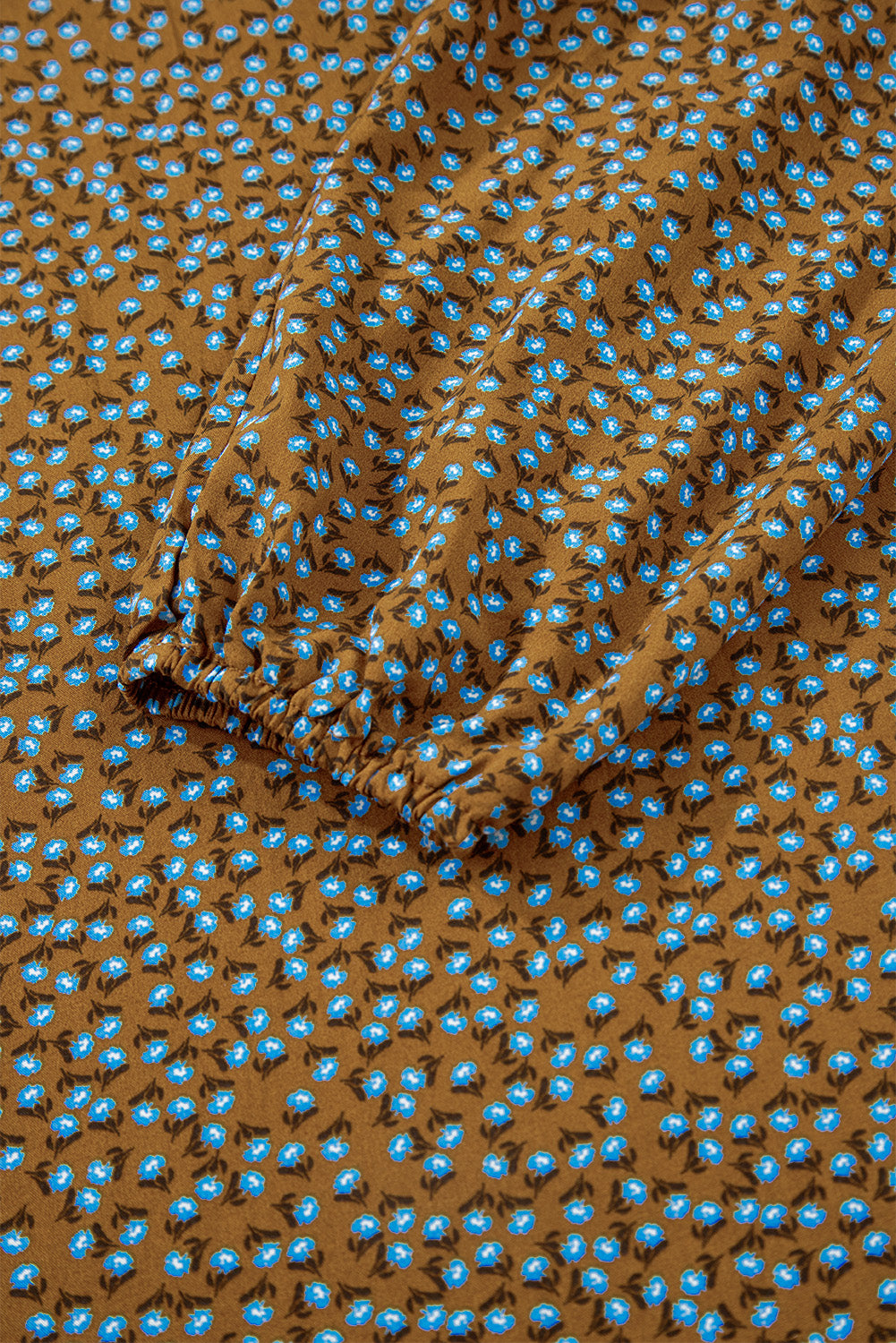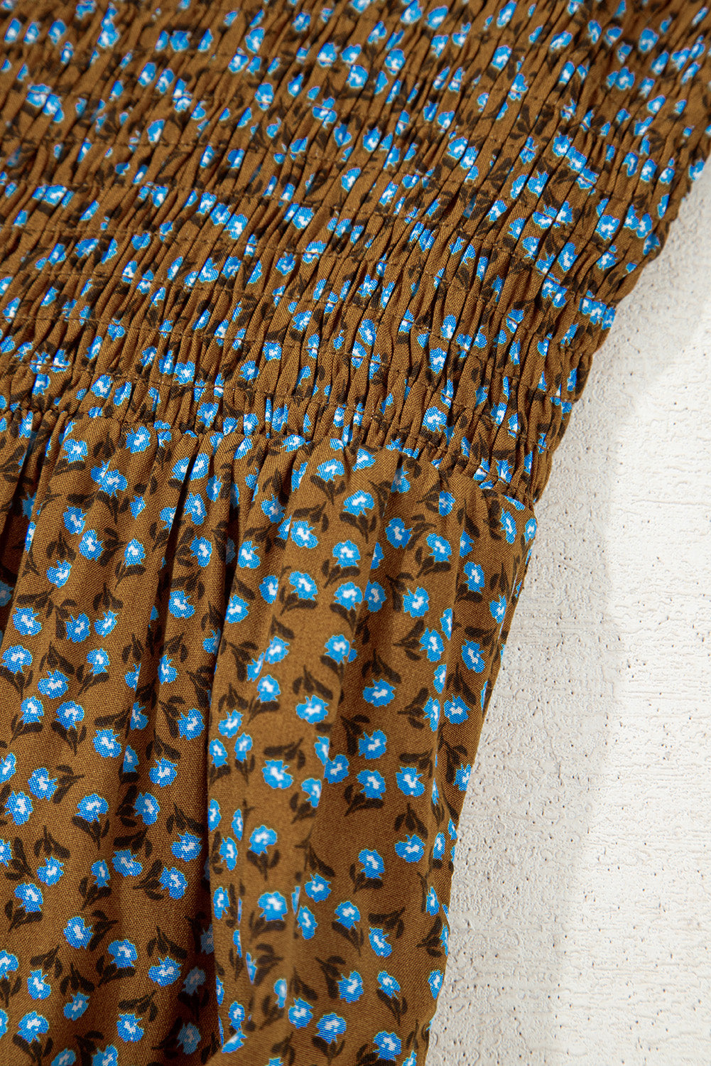 Brown Floral Print Western Smocked Bodice Square Neck Wide Leg Jumpsuit