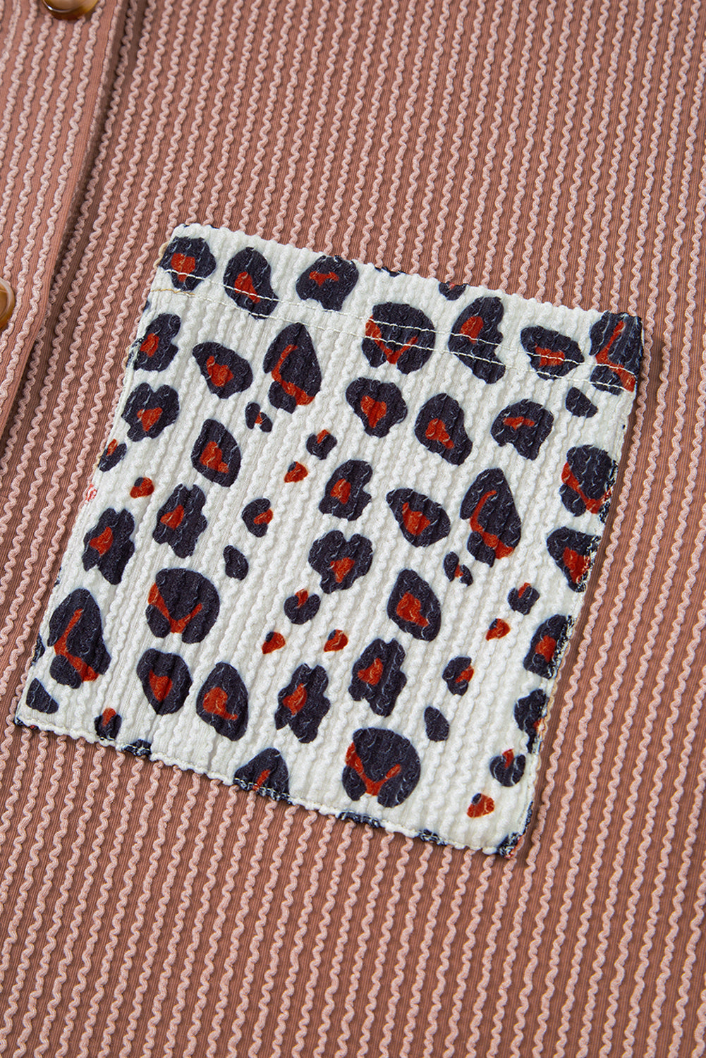 Dark Khaki Leopard Patched Twisted Ribbed Western Casual Shacket
