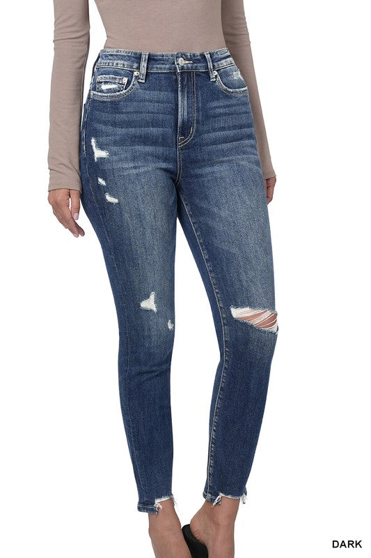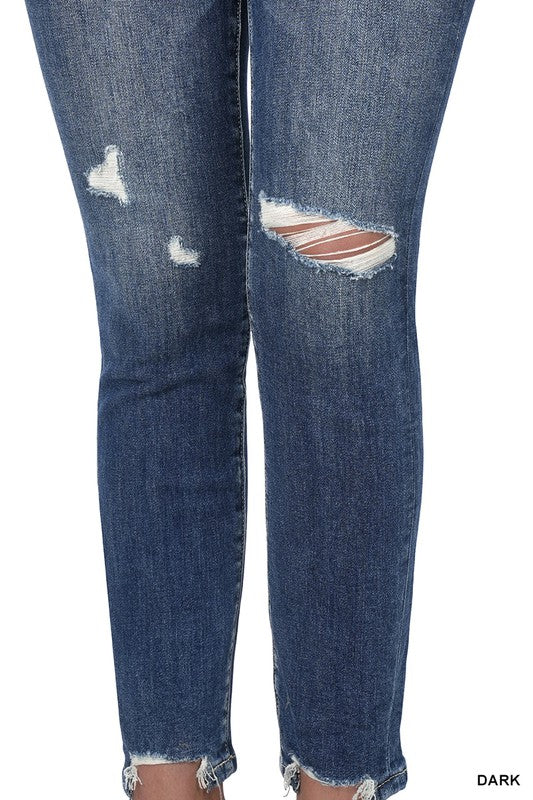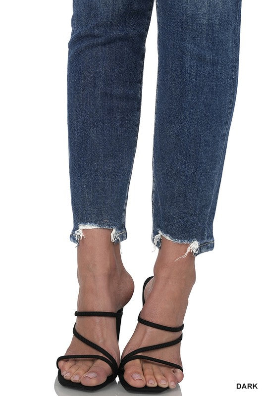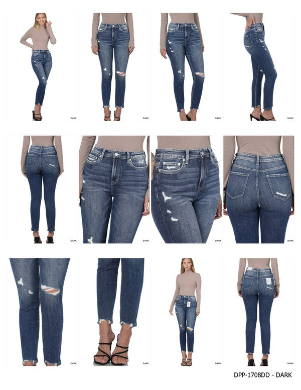 The Distressed Hem Ankle Skinny Denim Pants offer a trendy and edgy twist to your denim collection. These pants feature a stylish distressed hem detail that adds a touch of rugged chic to your outfit. With their ankle-length cut, they're perfect for showcasing your favorite footwear, making them a versatile choice for both casual and fashion-forward looks.