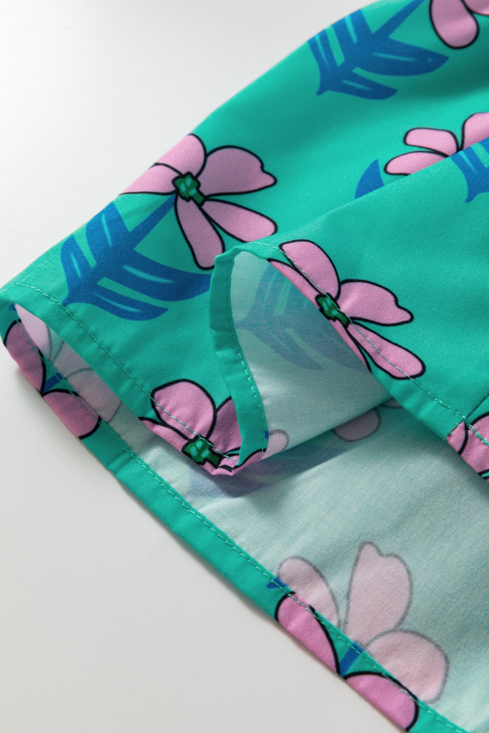 Green Floral Print Frilly Smocked Detail High Waist Mini Dress