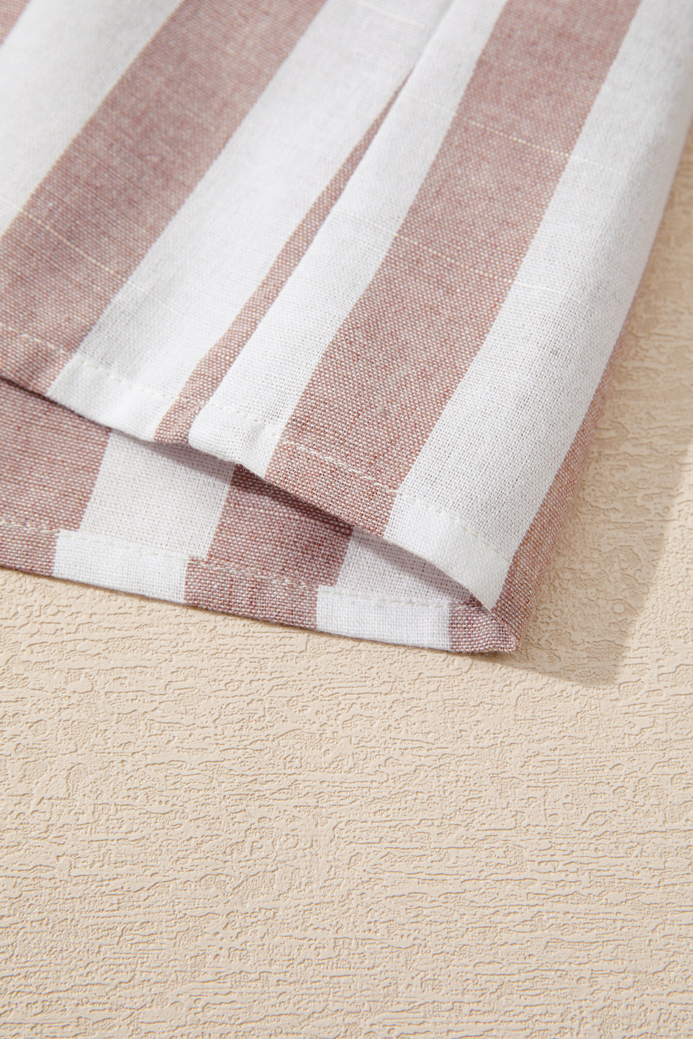 Khaki Stripe Casual Button Down Sleeveless Shirt
