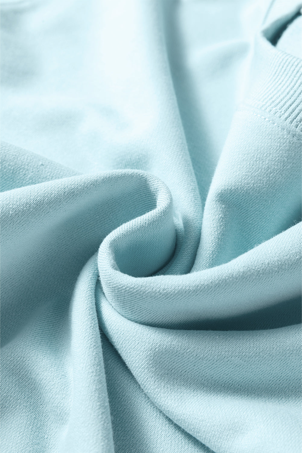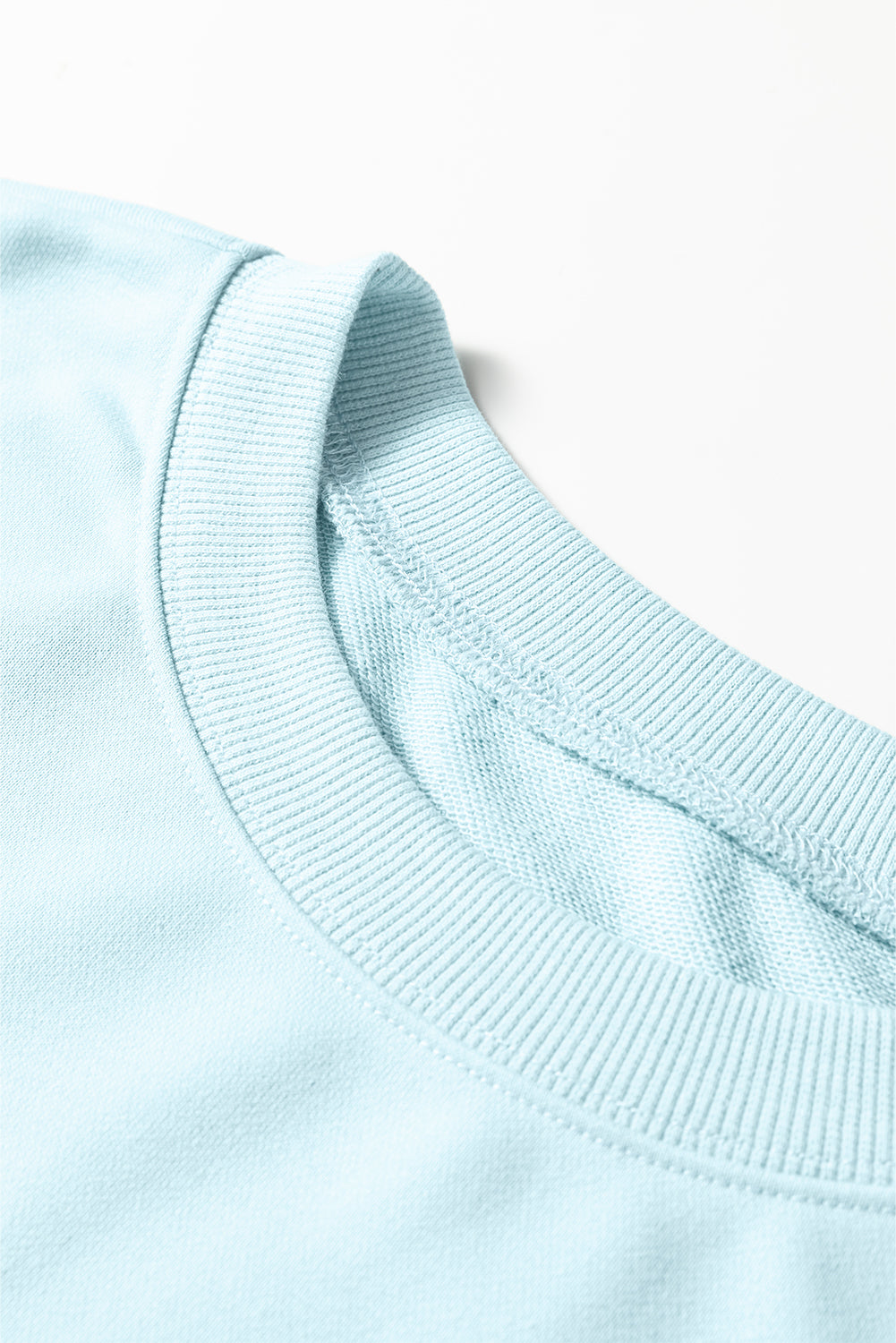 Mist Blue Drop Shoulder Puff Sleeve Crop Pullover Drawstring Wide Leg Pants Set