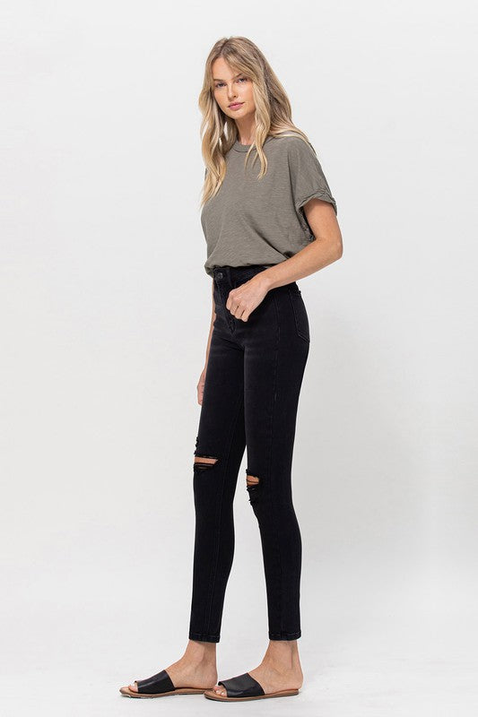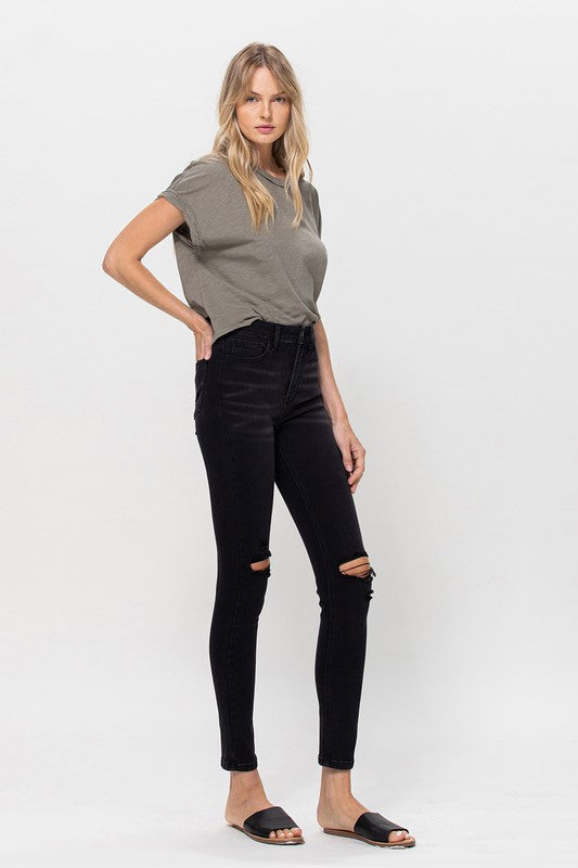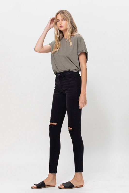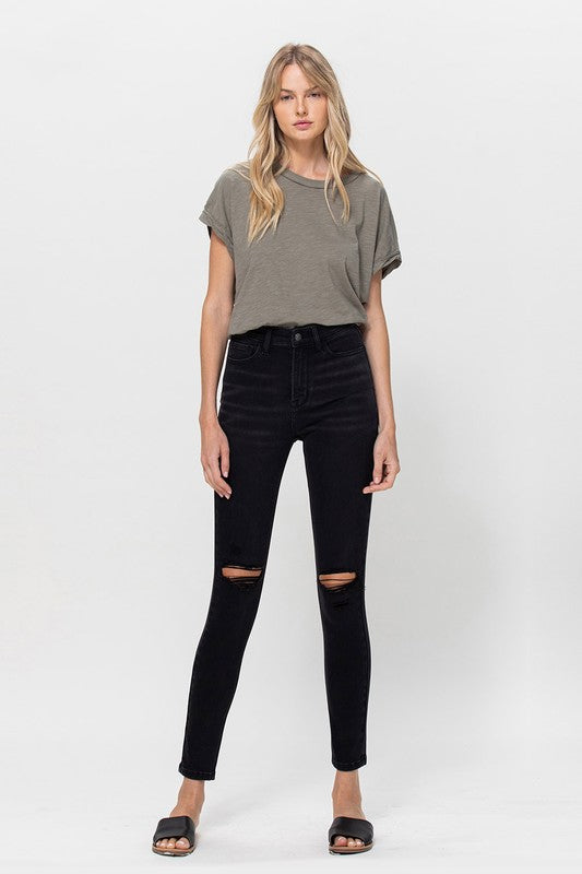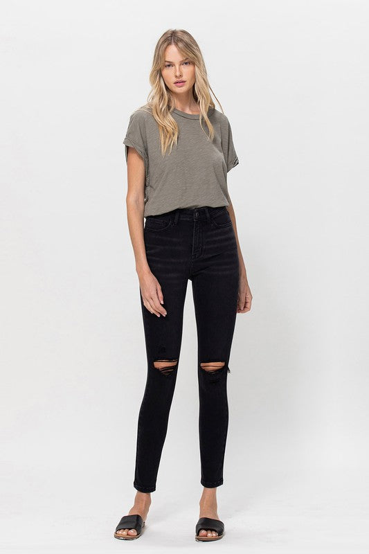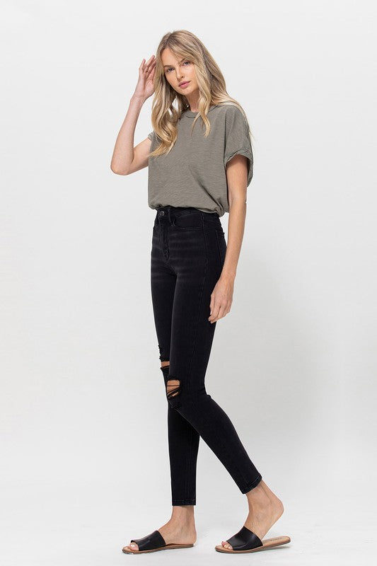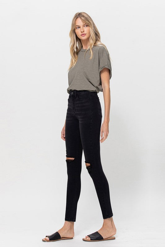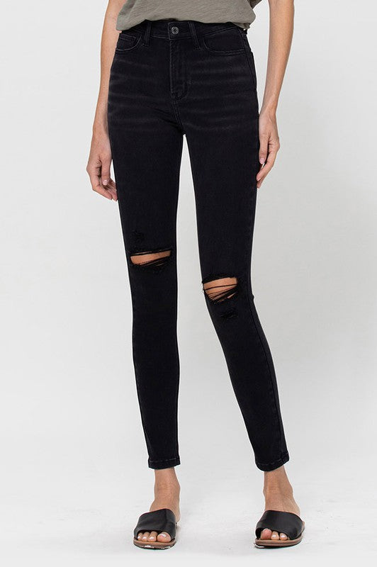 These jeans offer the perfect blend of flexibility and softness that ensures a comfortable and flattering fit. The high-rise design not only accentuates your figure but also adds a touch of contemporary flair to your outfit. The standout feature of these jeans is their incredibly soft fabric, providing an unparalleled level of comfort that you'll love to wear all day long. The ankle length adds a modern twist to the classic skinny jean style, making them perfect for showcasing your favorite shoes. The distressed details add an edgy touch to your look, elevating your style effortlessly.